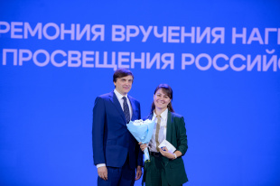 Софья Александровна Труненкова, учитель химии и советник директора по воспитанию школы № 1 города Гусь-Хрустальный от Министра просвещения Российской Федерации Сергея Сергеевича Кравцова получила нагрудный знак «Молодость и профессионализм».